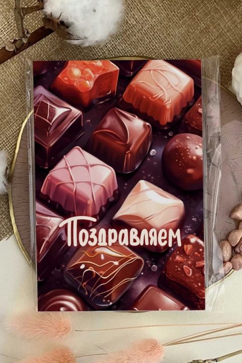 Дизайнерская открытка «Поздравляем (шоколадные конфеты)» Ar143