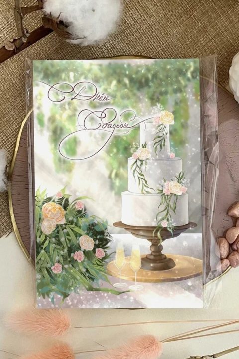 Дизайнерская открытка «С Днем Свадьбы (свадебный торт)» Ar126