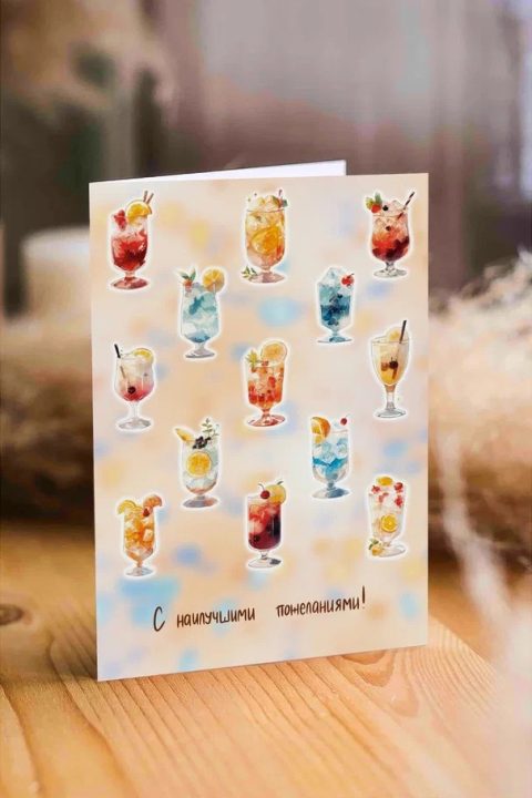 Дизайнерская открытка «С наилучшими пожеланиями! (коктейли)» Ar124