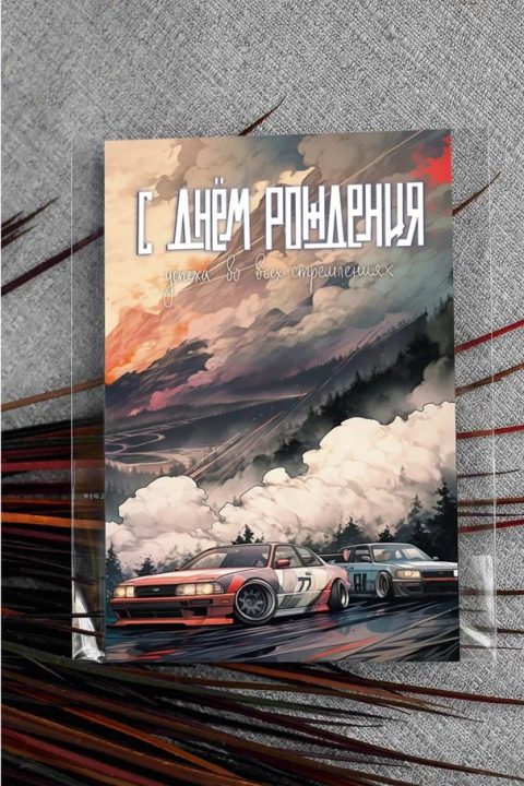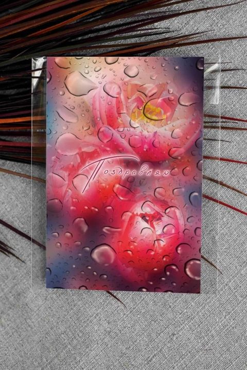 Открытка выполнена на высококачественной дизайнерской бумаге. В эти открытки мы вкладываем больше внимания и работы. Чтобы нарисовать такую открытку художнику нужен целый день. Каждая дизайнерская открытка — это предмет творчества наших художников. Можно сказать, что это картина в миниатюре.