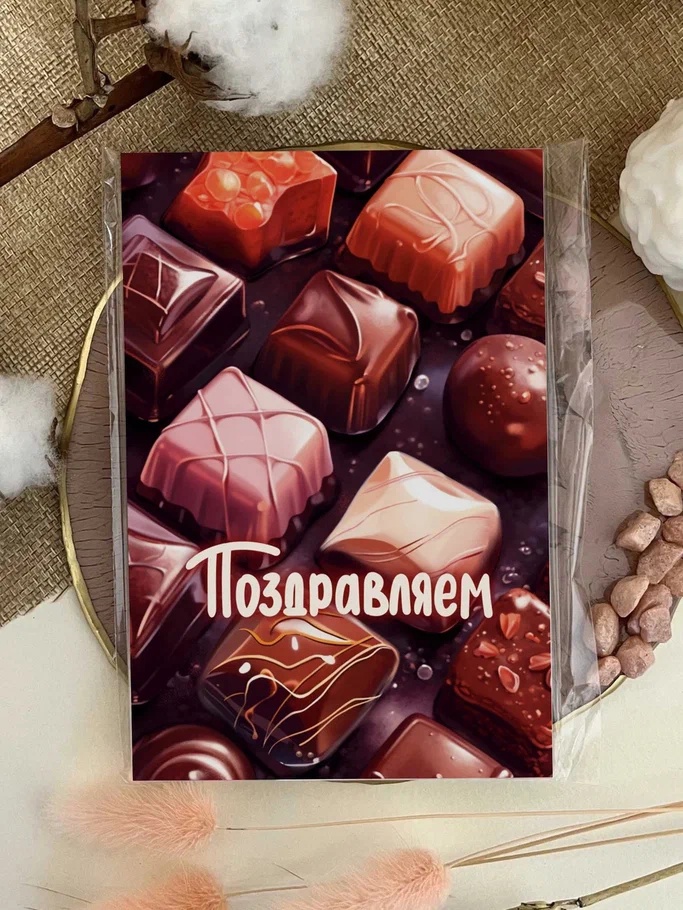 Дизайнерская открытка «Поздравляем (шоколадные конфеты)» Ar143