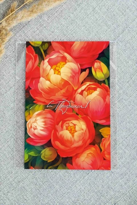Открытка выполнена на высококачественной дизайнерской бумаге. В эти открытки мы вкладываем больше внимания и работы. Чтобы нарисовать такую открытку художнику нужен целый день. Каждая дизайнерская открытка — это предмет творчества наших художников. Можно сказать, что это картина в миниатюре.