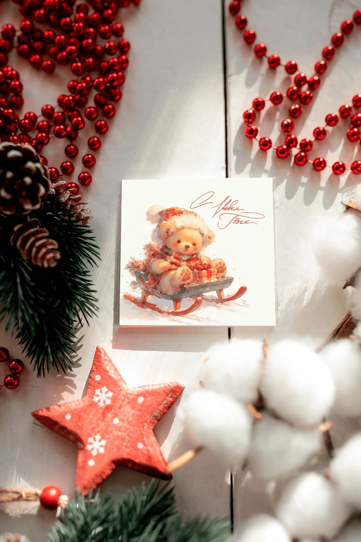 Карточка «С Новым Годом (новогодний мишка)» K529