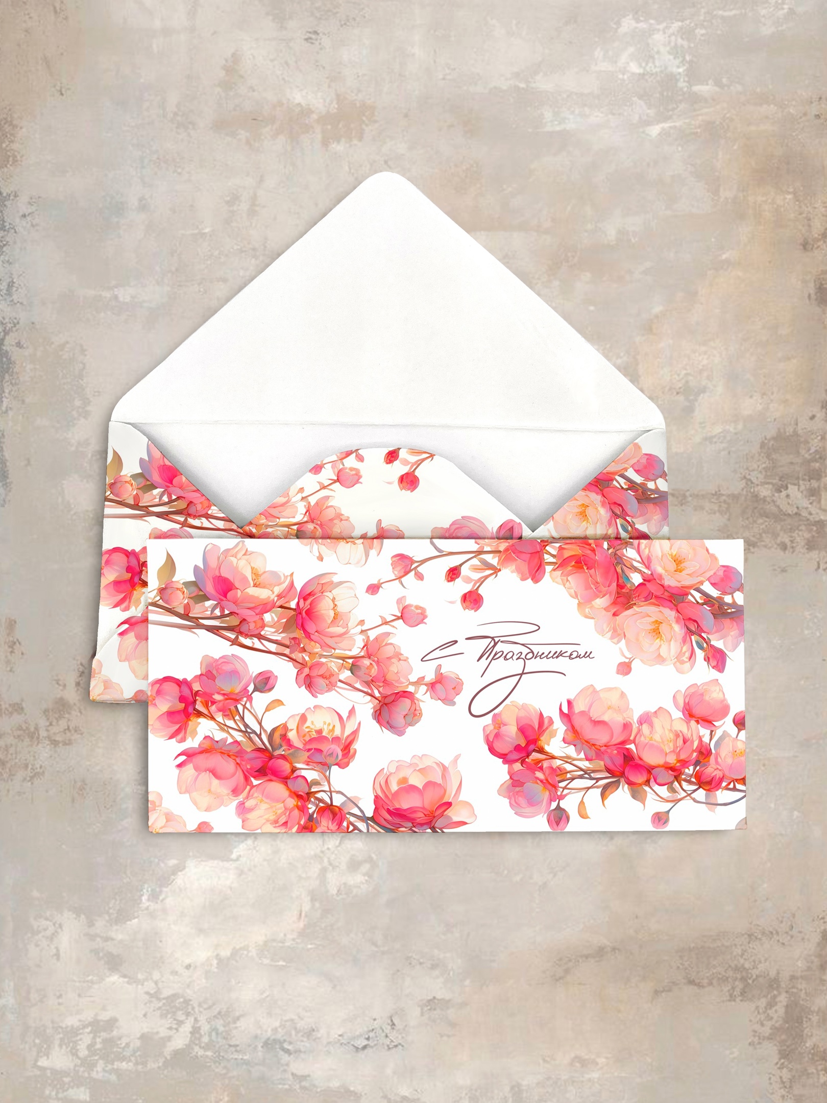 Конверт «Пионы с бантом» Cn284