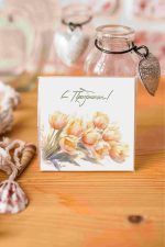 Мини-открытка «С праздником! (желтые тюльпаны)» Mi93 Картон (цена за 10 штук)