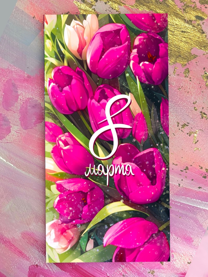Открытка Евро «8 Марта (розовые тюльпаны)» E32