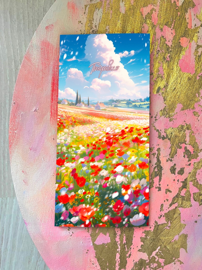 Открытка Евро «Поздравляю (цветочное поле)» E46