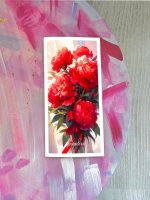 Открытка Евро «Поздравляю (красные пионы)» E14