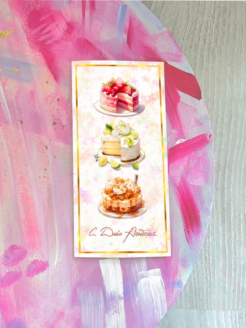Открытка Евро «С Днем Рождения (тортики)» E05