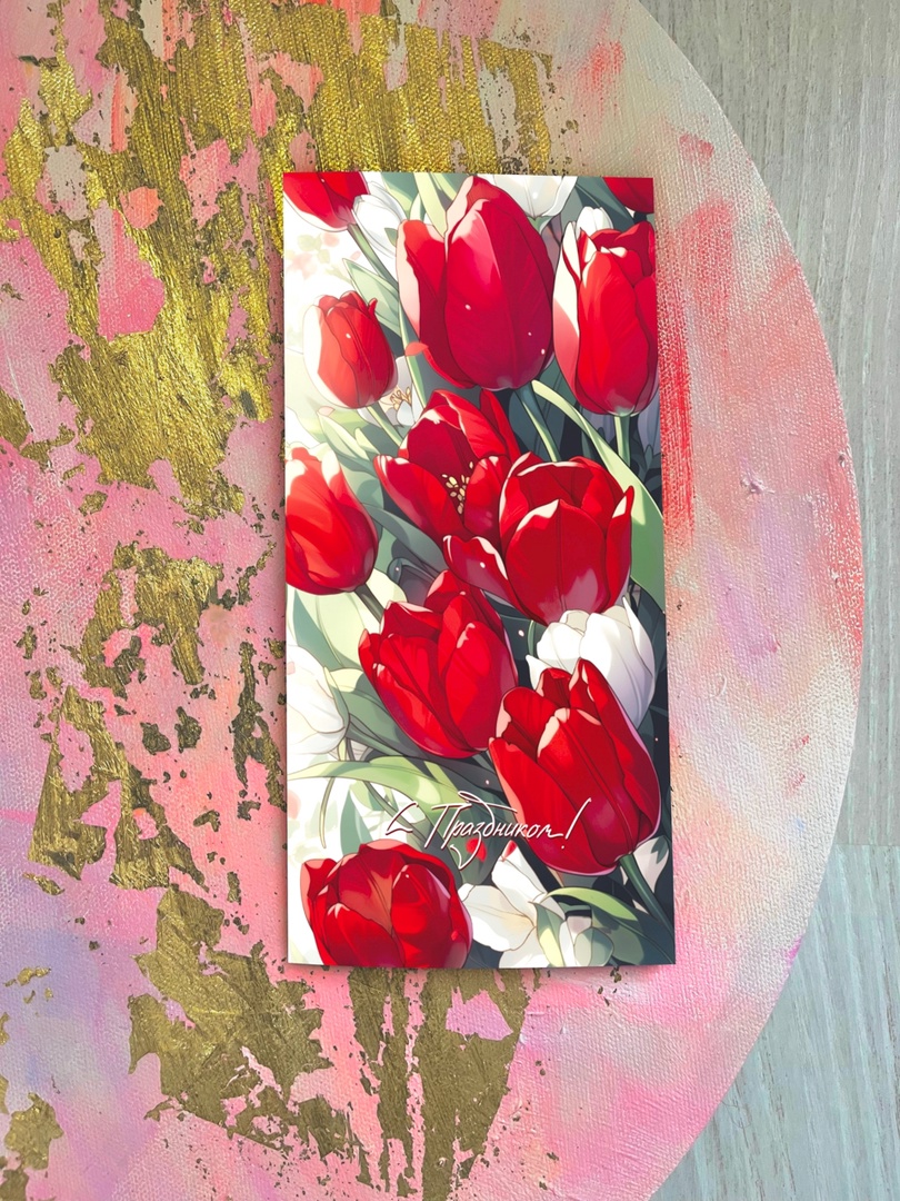 Открытка Евро «С Праздником! (красные тюльпаны)» E34