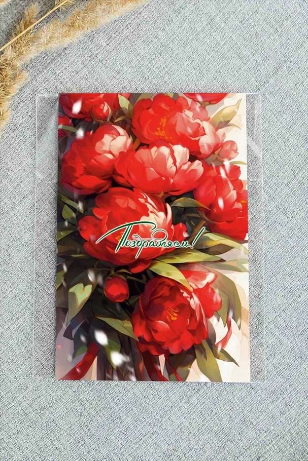 Дизайнерская открытка «Поздравляем! (пионы)» Ar118