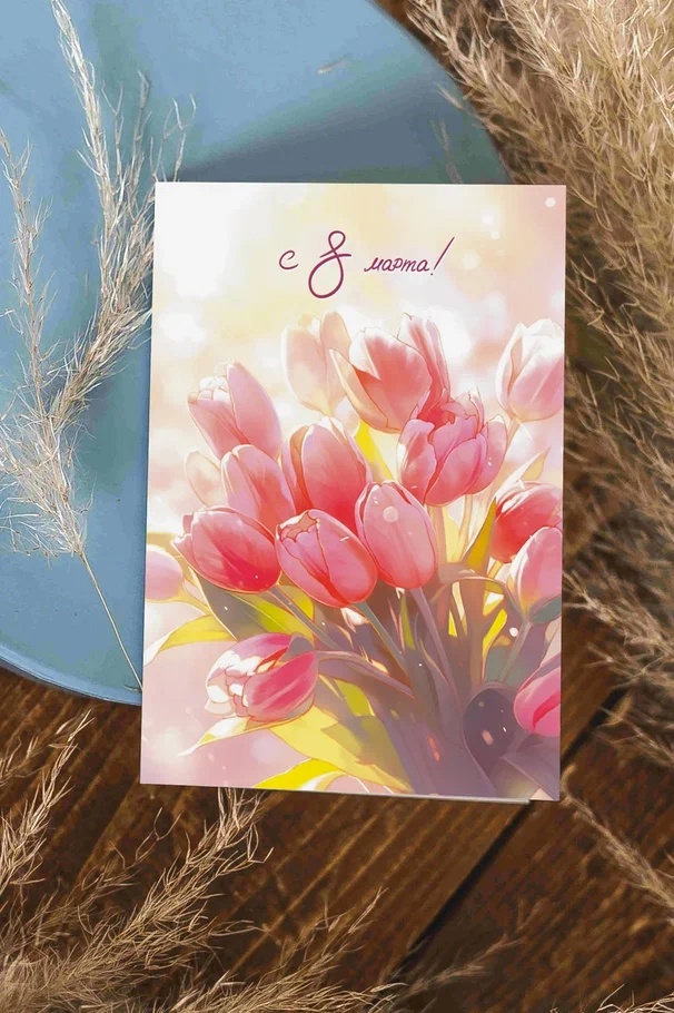 Дизайнерская открытка «С 8 марта (розовые тюльпаны)» Ar160