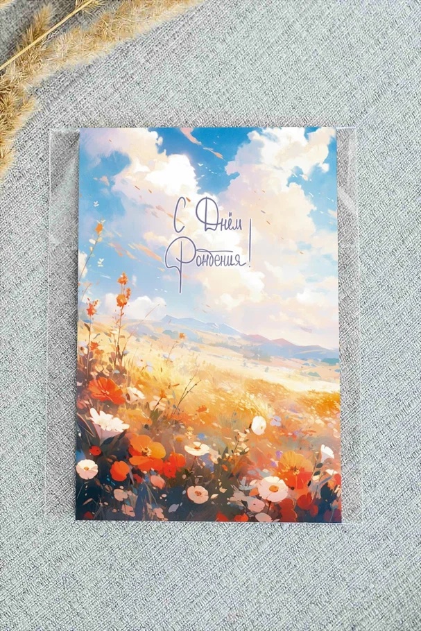Дизайнерская открытка «С Днем Рождения! (цветочное поле)» Ar128