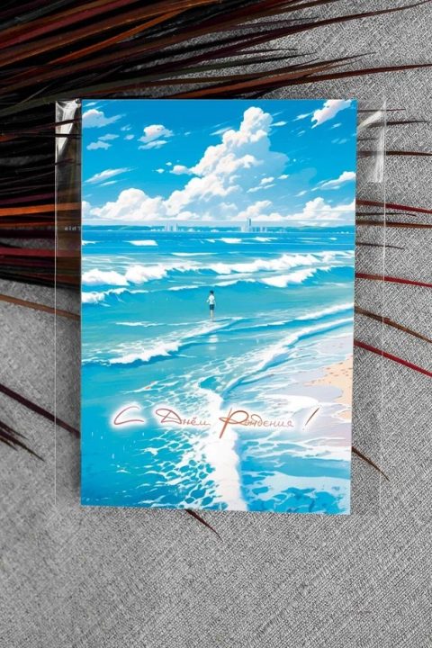Открытка выполнена на высококачественной дизайнерской бумаге. В эти открытки мы вкладываем больше внимания и работы. Чтобы нарисовать такую открытку художнику нужен целый день. Каждая дизайнерская открытка — это предмет творчества наших художников. Можно сказать, что это картина в миниатюре.