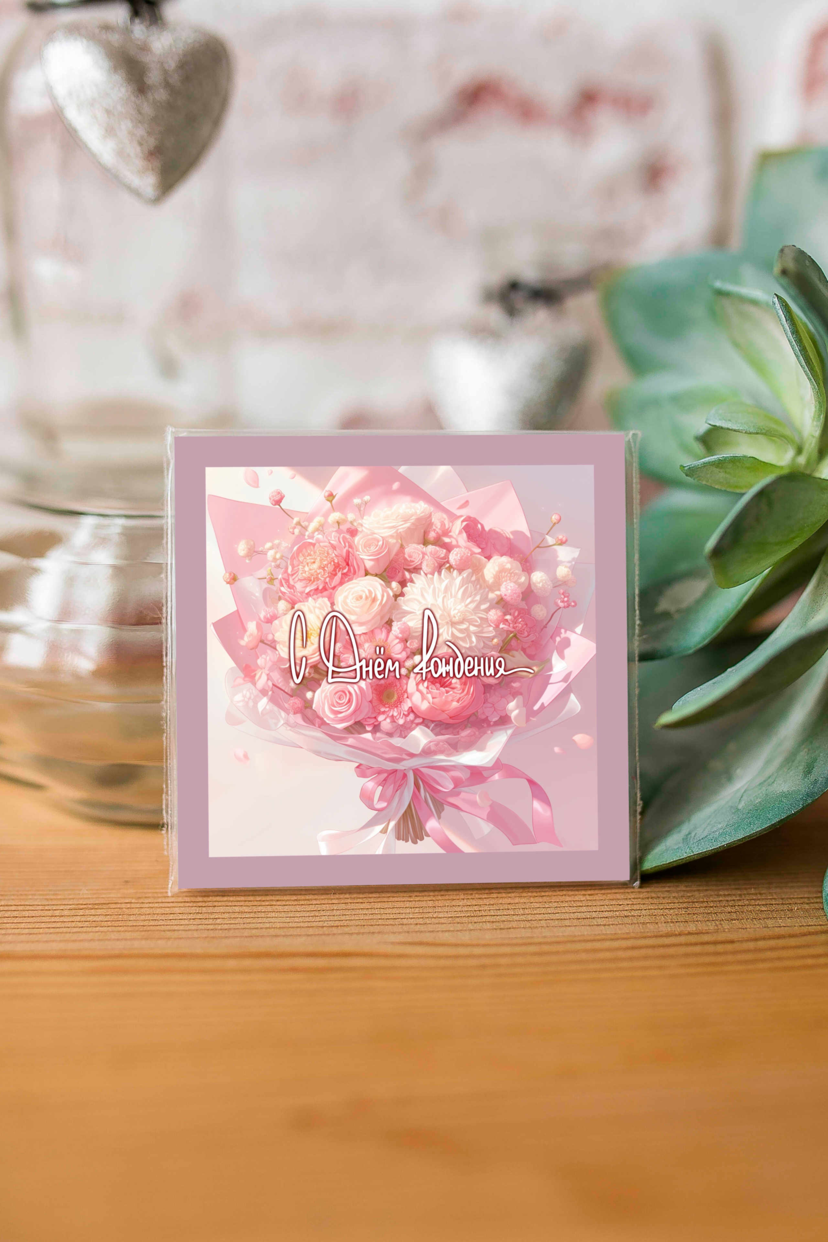 Карточка » С Днем Рождения (букет розовых цветов)» K461