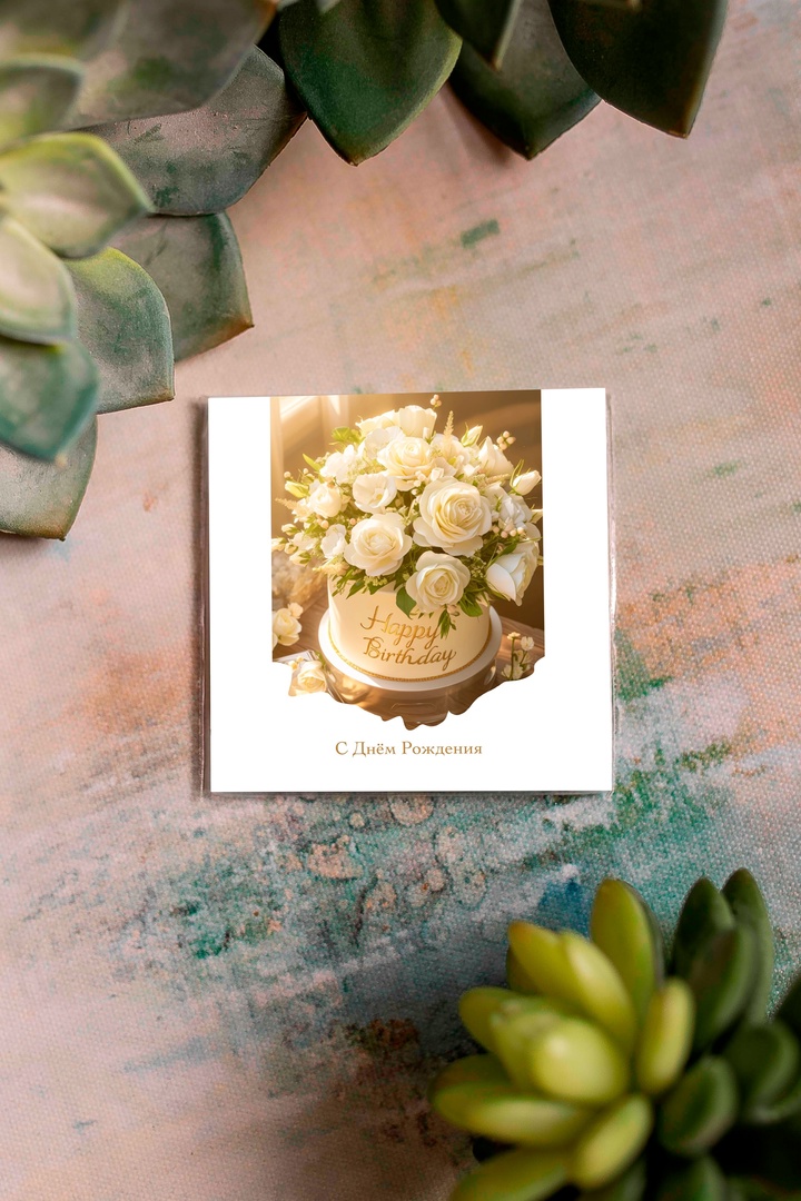 Карточка «С Днем Рождения (коробка белых роз)» K530