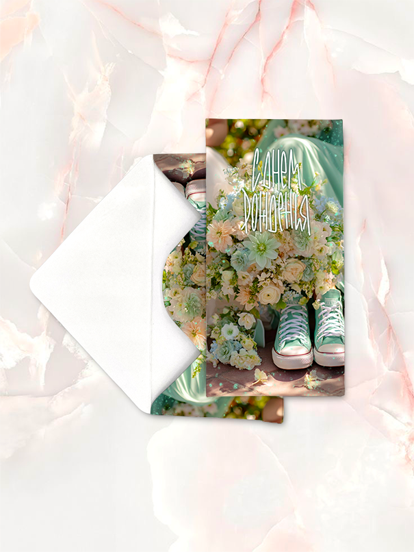 Конверт выполнен на высококачественной дизайнерской бумаге. Все наши конверты мы полностью рисуем сами. Уделяя огромное внимание мелочам, мы получаем уникальные конверты, пропитанные любовью и нежностью.