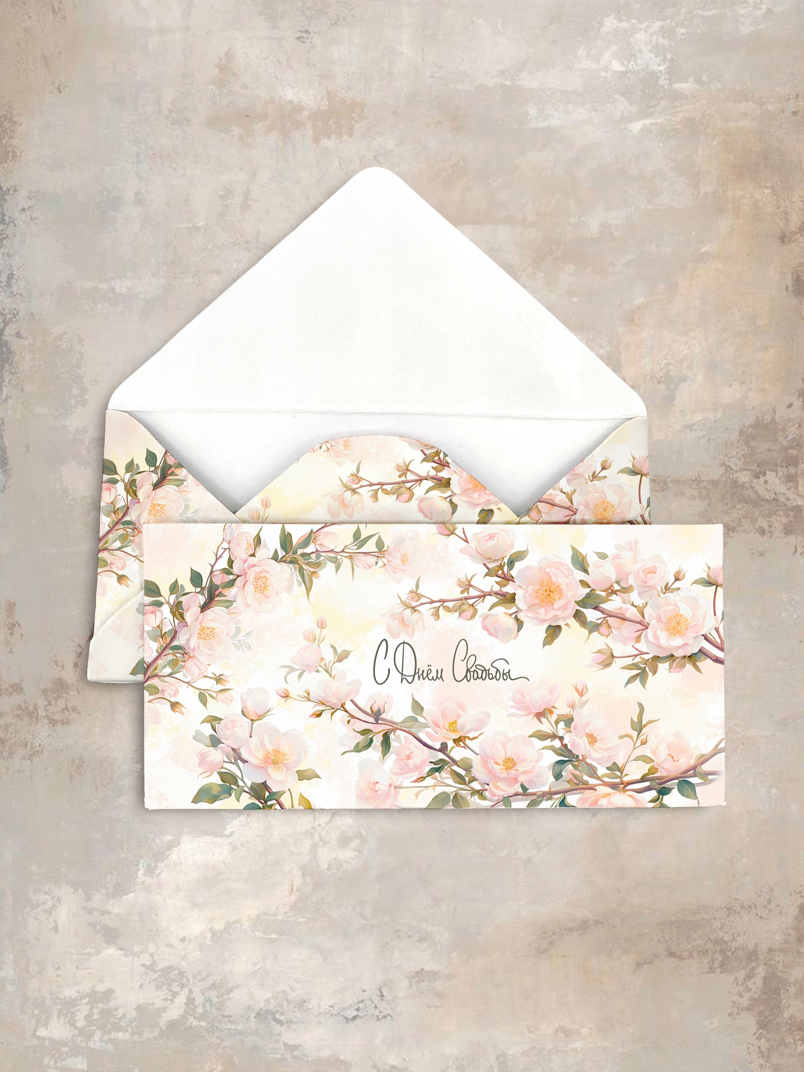 Конверт выполнен на высококачественной дизайнерской бумаге. Все наши конверты мы полностью рисуем сами. Уделяя огромное внимание мелочам, мы получаем уникальные конверты, пропитанные любовью и нежностью.