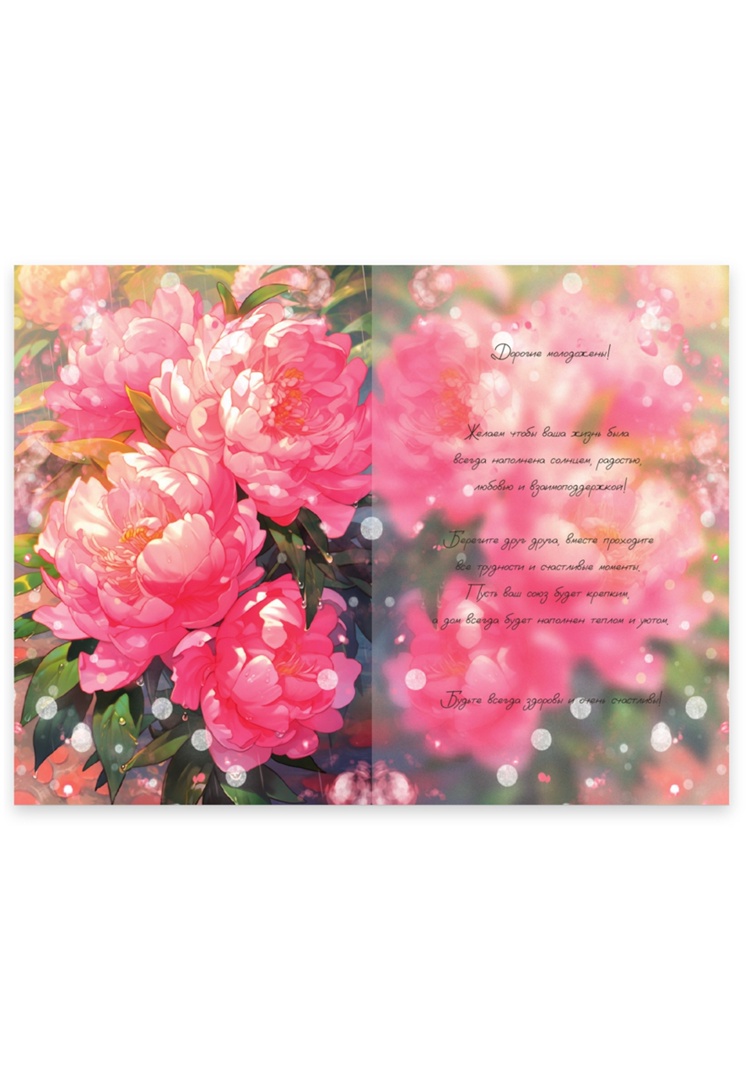 Открытка А5+ «С Днем Свадьбы (пионы)» OF14